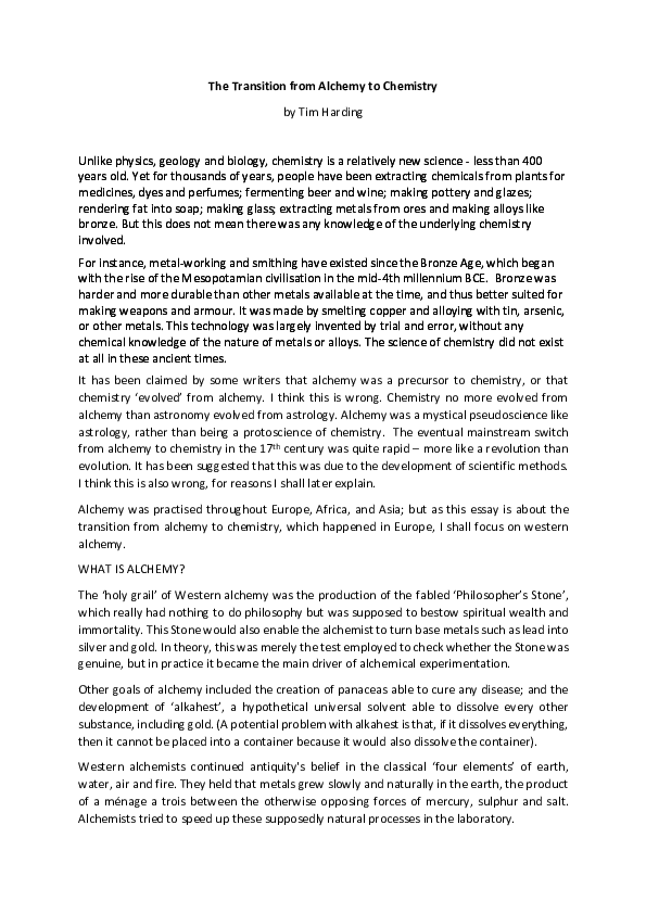 From Alchemy To Chemistry Nature