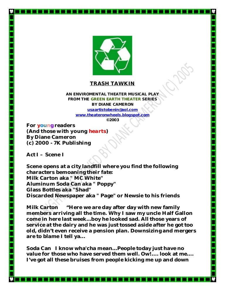 Green Earth Theater Productions Trash Tawkin Pdf