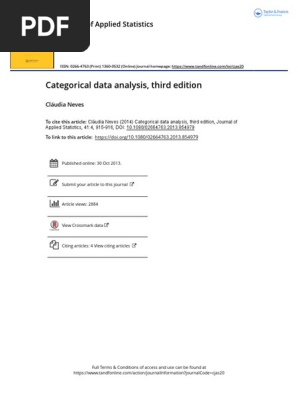 An introduction to categorical data analysis solution manual pdf. Jul 15 2020 an introduction to categorical data analysis 2nd edition solution manual 15 pdf drive search and download pdf files for free. This manual accompanies agrestis categorical data analysis 2002. An introduction to categorical data analysis agresti solution manual. Categorical data analysis solutions to selected odd numbered problems alan agresti version march 15 2006 c alan agresti 2006 this manual contains solutions and hints to solutions for many of the odd numbered exercises in categoricaldataanalysis second edition by alan agresti john wiley sons 2002.