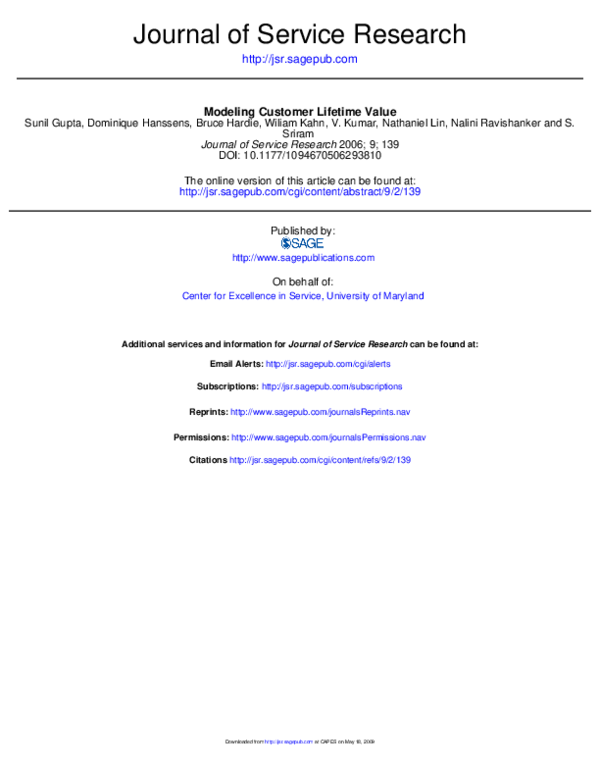 Pdf Modeling Customer Lifetime Value Sunil Gupta Academia Edu