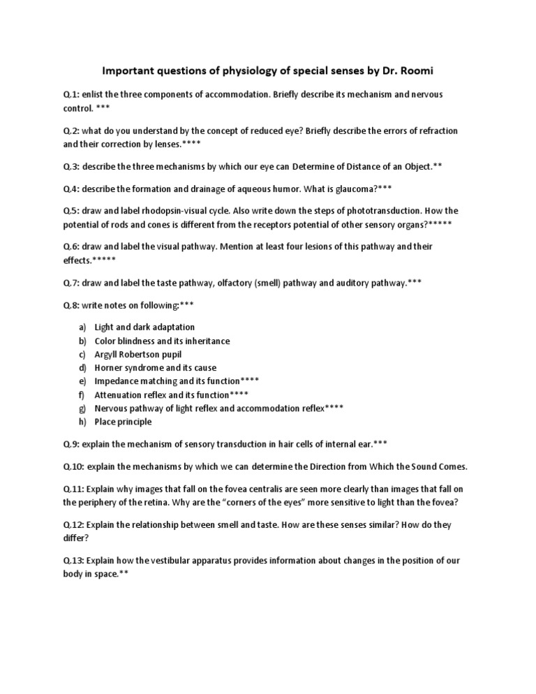 Special Senses Introduction Activity 1 Observation Of The Human