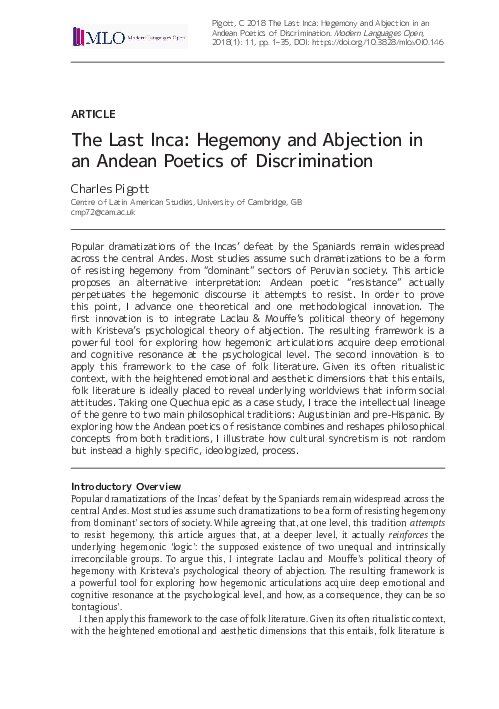Pdf The Last Inca Hegemony And Abjection In An Andean Poetics Of