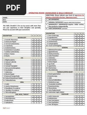Or Scrub Tech Skills Checklist Heart Surgery