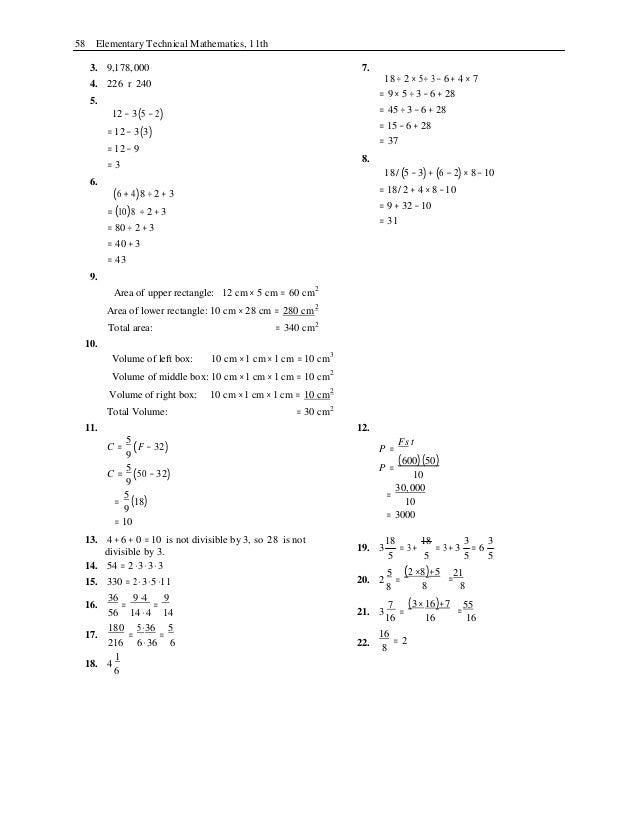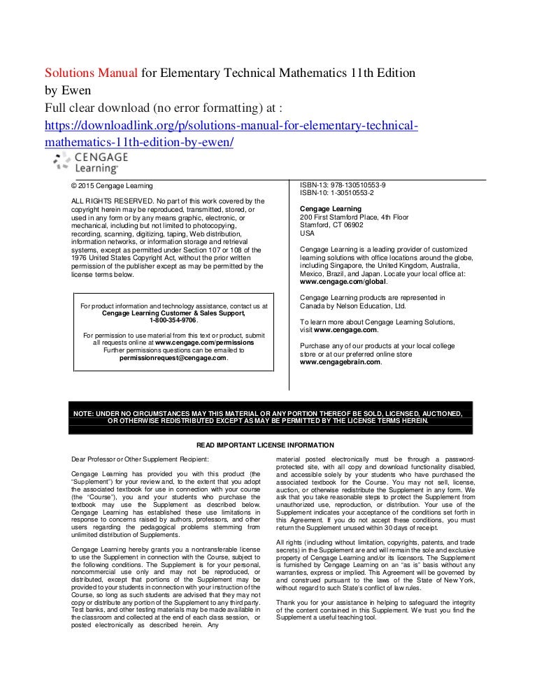 Elementary Technical Mathematics 11th Edition Ewen Solutions Manual