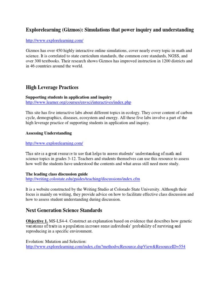 Evolution Stem Case Lesson Info Explorelearning