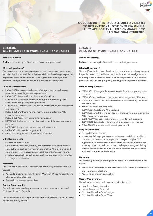 Https Www Mbavtraining Com Au Wp Content Uploads 2018 07 2018 2cis Bsb41415 Certificate Iv In Work Health And Safety V10 0 Pdf