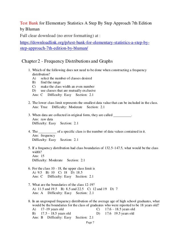Solutions Manual For Elementary Statistics A Step By Step Approach 9t