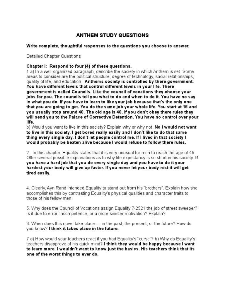 Anthem Essay Questions Gradesaver