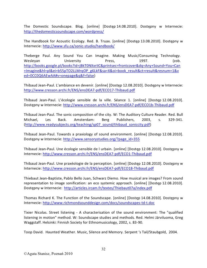 Bibliografia Soundscpe Sound Landscape