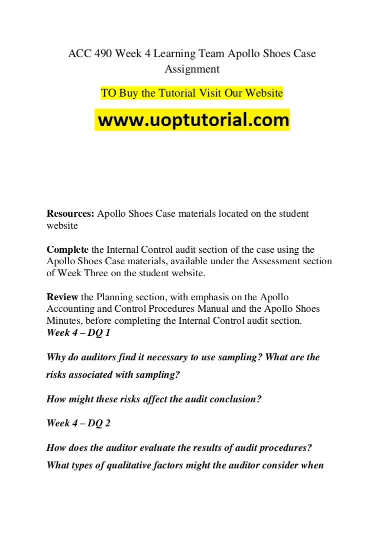 Apollo Shoes Inc An Audit Case To Accompany Auditing And