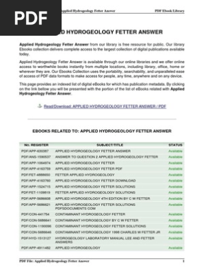 Applied Hydrogeology 4th Edition By C W Fetter Wl1p2z8mv5lj
