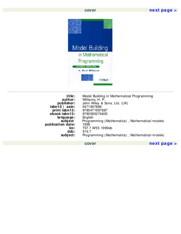 Pdf Model Building In Mathematical Programming By H P Williams