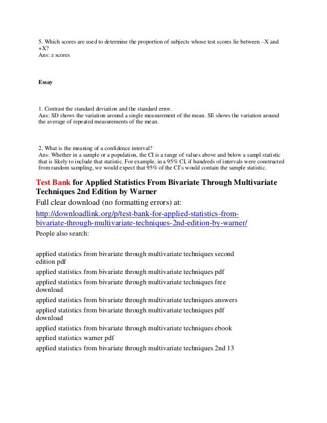 Applied Univariate Bivariate And Multivariate Statistics Wiley