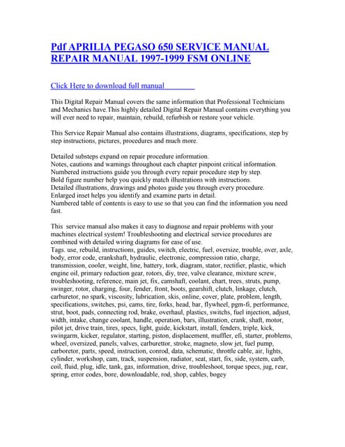 1997 Aprilia Pegaso 650 Service Repair Manual By Marcelomast Issuu