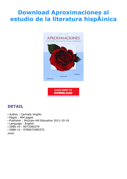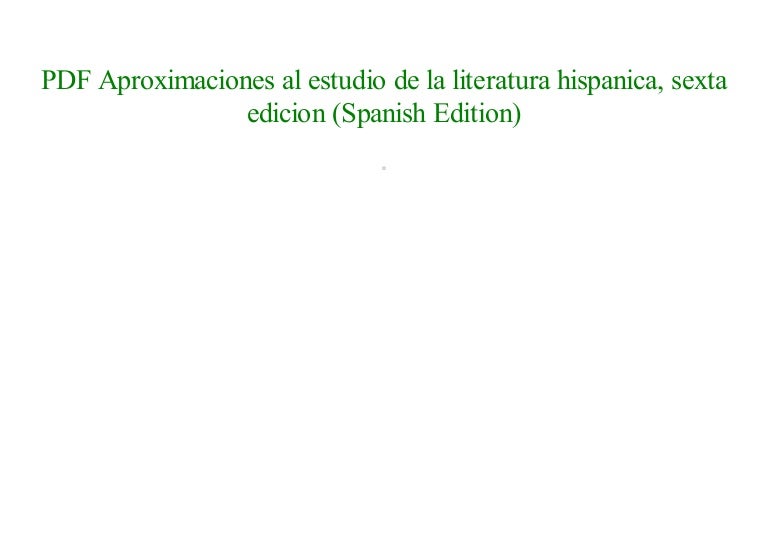 Aproximaciones Al Estudio De La Literatura Hispanica 7th Edition Pdf
