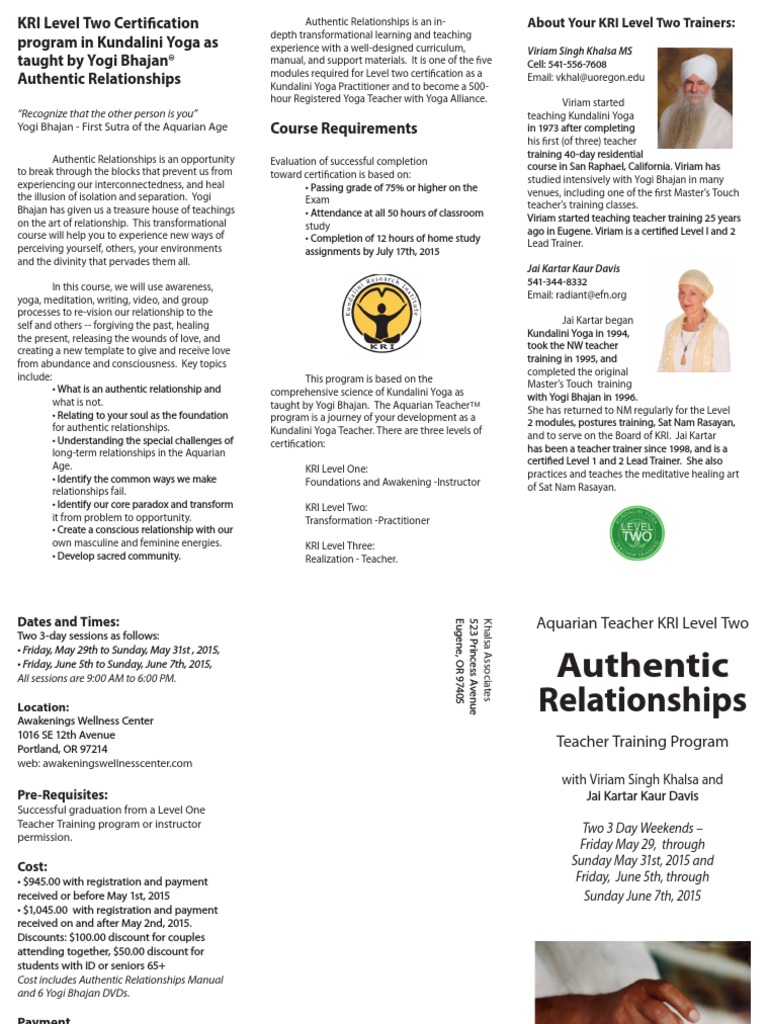 L2 Authentic Relationships Brochure 2015 Kundalini Yoga Kundalini
