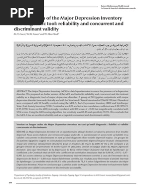 Arabic Version Of The Major Depression Inventory Emhj Pdf