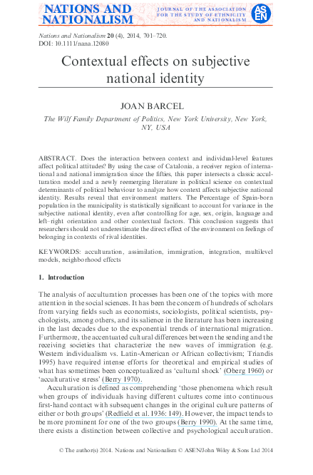 Pdf Contextual Effects On Subjective National Identity Joan