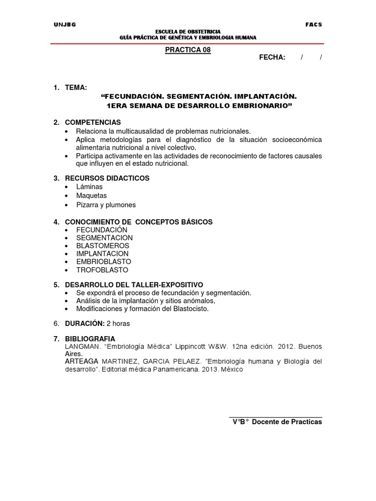 Practica 08 Y 09 2 Pdf Implantacion Embrion Humano