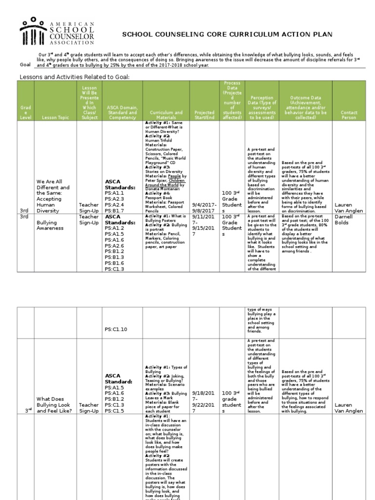 Asca Lesson Plan Template Db Bullying School Counselor