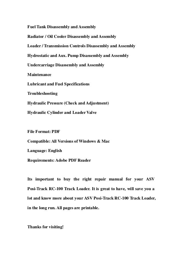 Download Asv Rc 100 Service And Parts Manuals