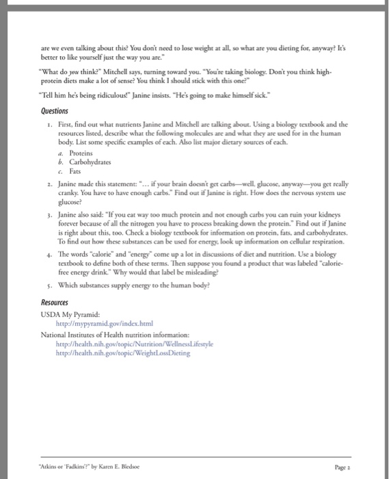 Solved Atkins Or Fadkins 6y Karen E Bledsoe Biology