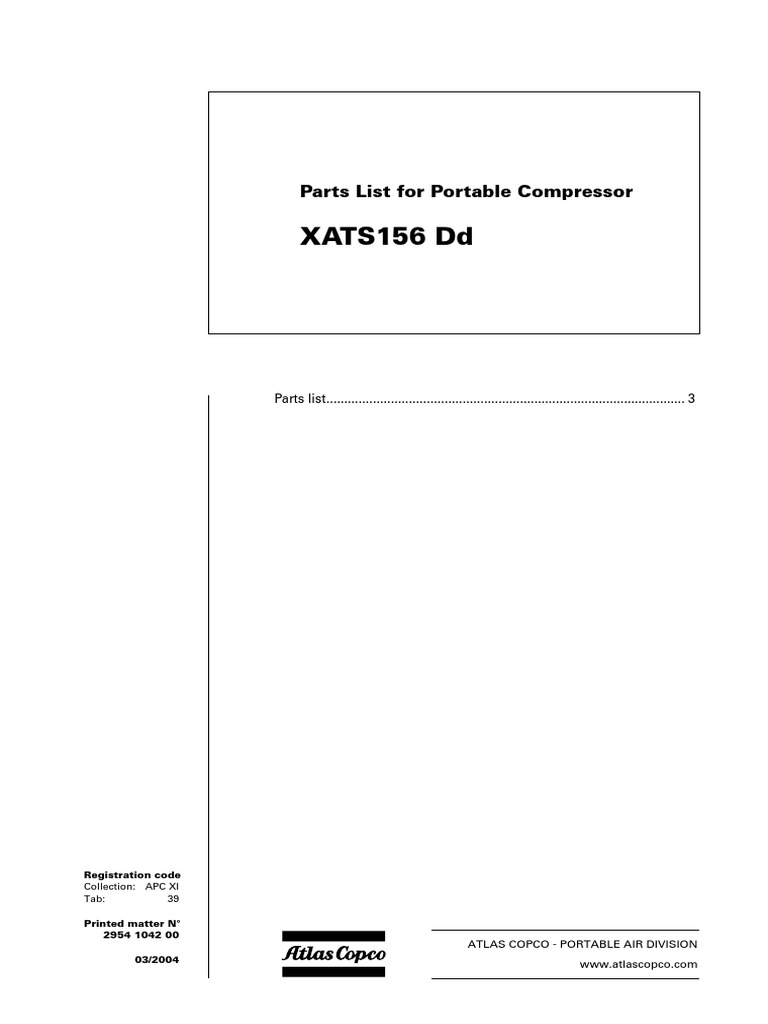 Atlas Copco Instruction Manual And Parts List For Portable