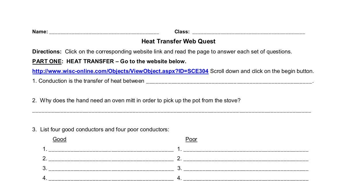Heat Transfer Heat Transfer Webquest