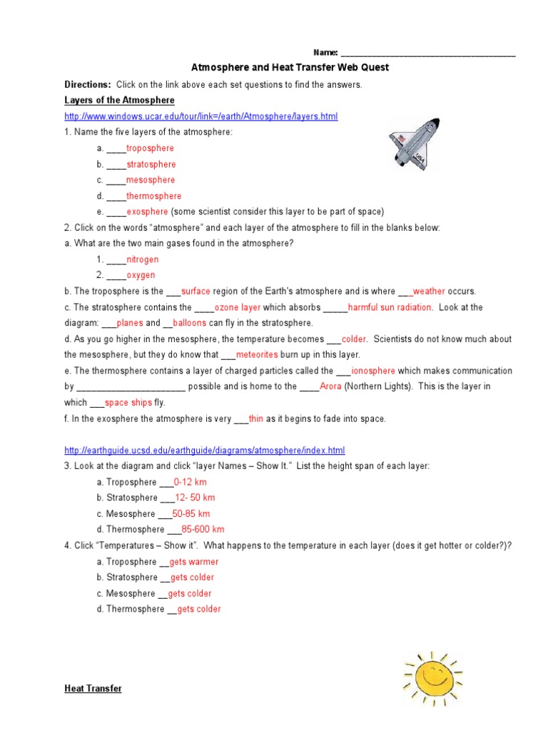 Atmosphere And Heat Transfer Web Quest