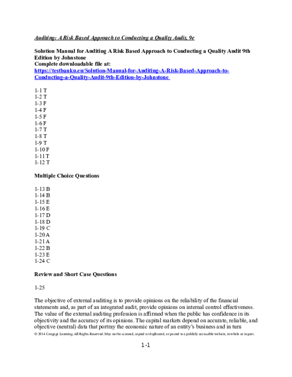 Solutions Of The Audit Process Principles Practice And Cases