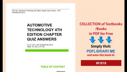 To get started finding automotive technology 4th. Automotive technology 4th edition chapter quiz answers automotive technology 4th edition chapter getting the books automotive technology 4th edition chapter quiz answers now is not type of challenging means. Learning objectives z explain the hydraulic and mechanical principles of a brake system. Read and download pdf ebook automotive technology 4th edition by james d halderman at online ebook library.