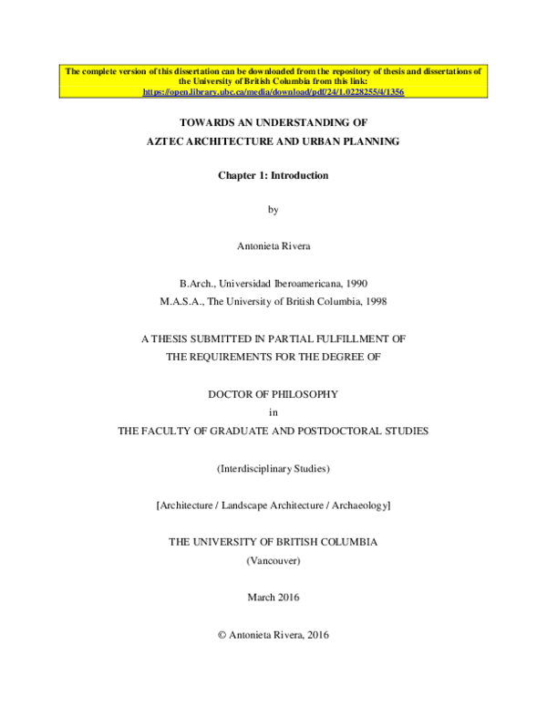 Towards An Understanding Of Aztec Architecture And Urban Planning
