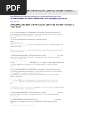 Bank Management And Financial Services 9th Edition Rose Test Bank
