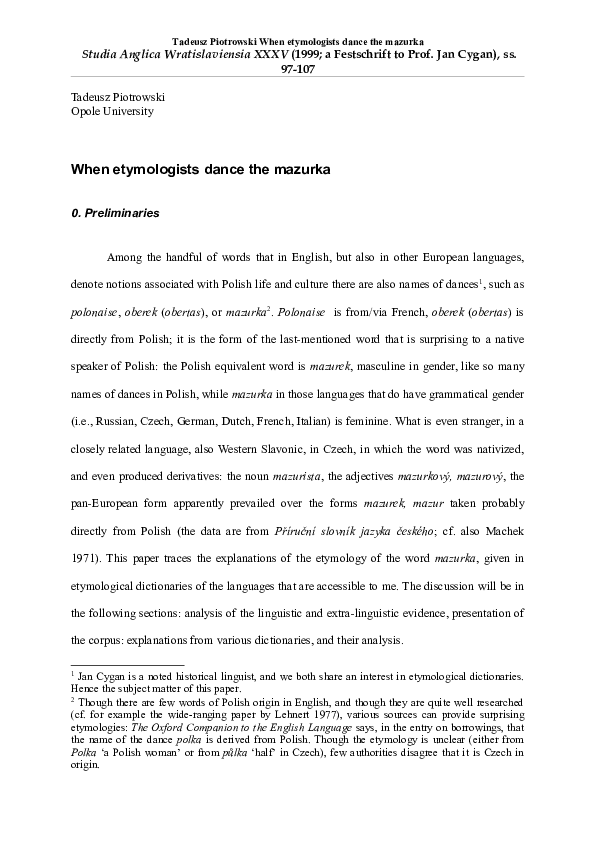 Pdf When Etymologists Dance The Mazurka Tadeusz Piotrowski
