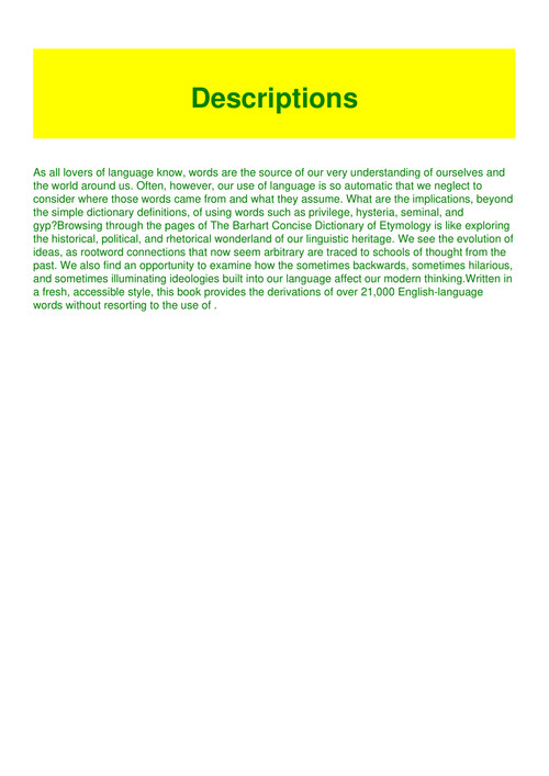 Barnhart Concise Dictionary Of Etymology Full