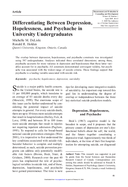 Hope And Hopelessness The Role Of Hope In Buffering The Impact Of