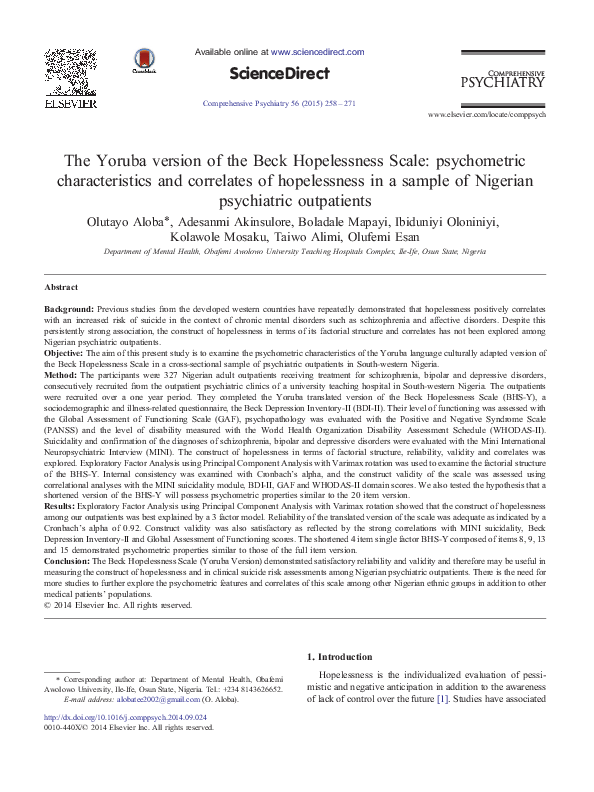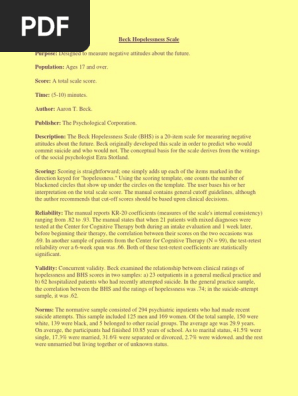 Pdf Adaptation Of The Beck Hopelessness Scale In Hungary