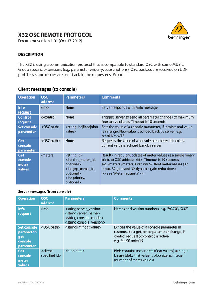 Behringer X32 Compact Tp Protocol Manual 752312 Areas Of