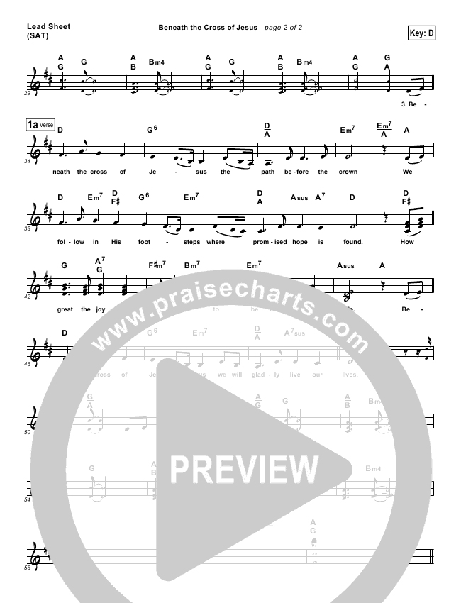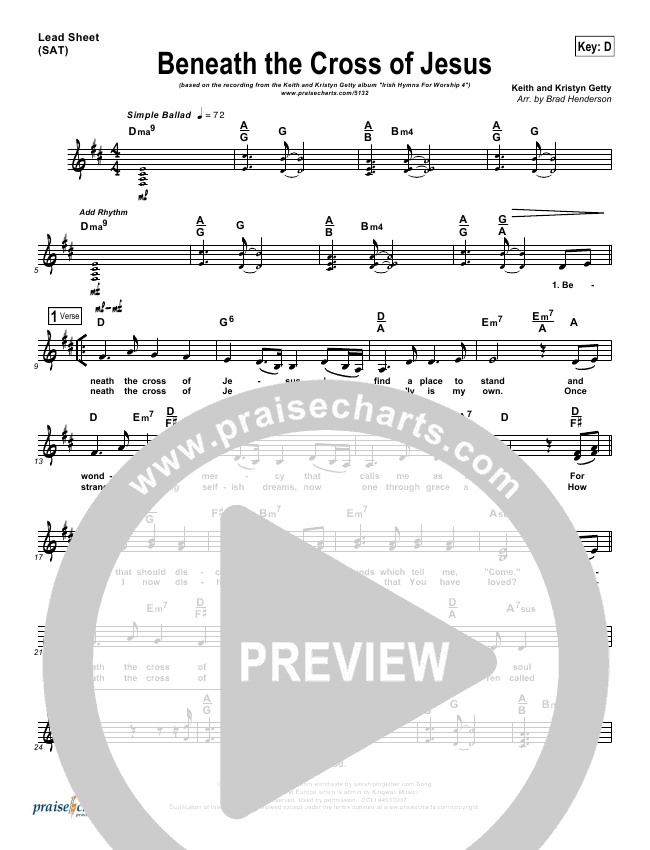 Beneath The Cross Of Jesus Lead Sheet Sat Keith Getty Kristyn