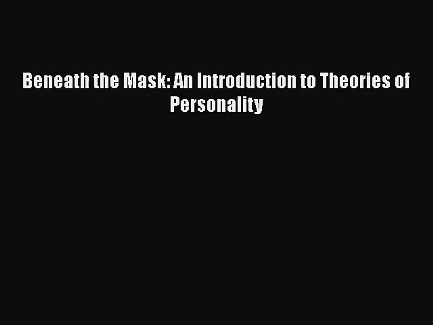 Pdf Download Beneath The Mask An Introduction To Theories Of