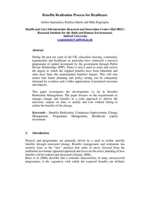 A Unified View Of Benefits Management Benefits Realization