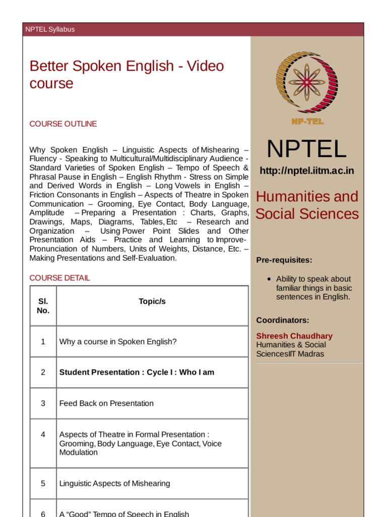 Lec4 Pdf Better Spoken English Prof Shreesh Chaudhary Department