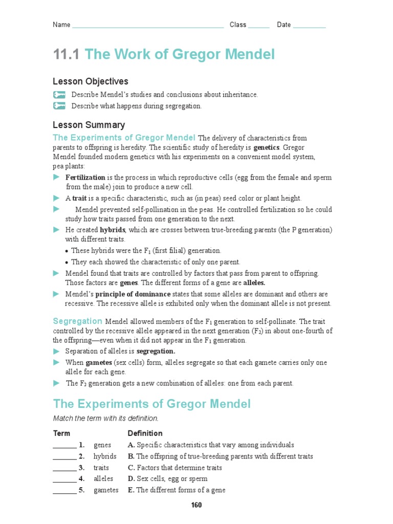 11 1 The Work Of Gregor Mendel Ppt Download