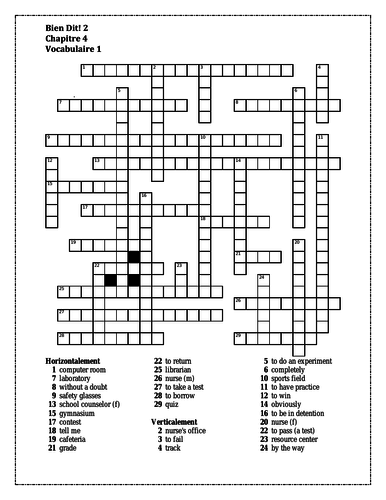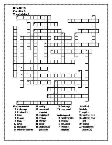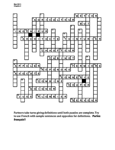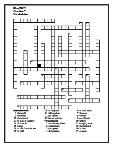 Bien Dit 2 Chapitre 7 Vocabulaire 1 Crossword Teaching Resources