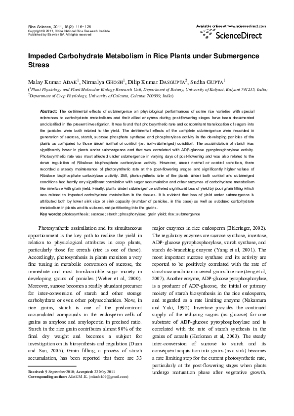 Pdf Oxidative Stress In Plants Production Metabolism And