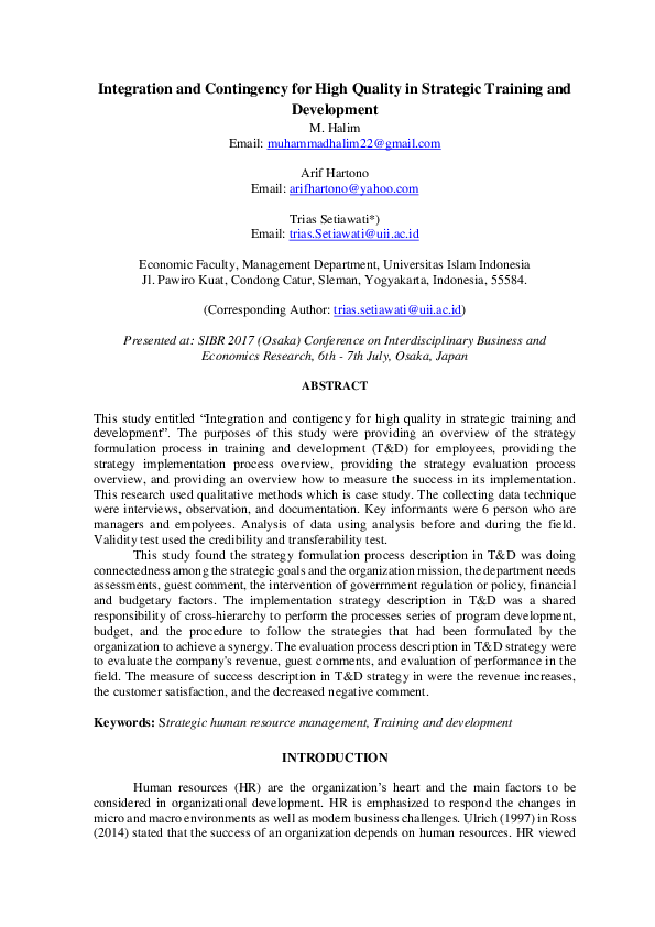Pdf Integration And Contingency For High Quality In Strategic