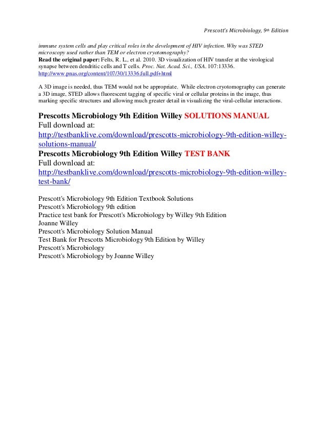 Prescotts Microbiology 10th Edition Willey Solutions Manual