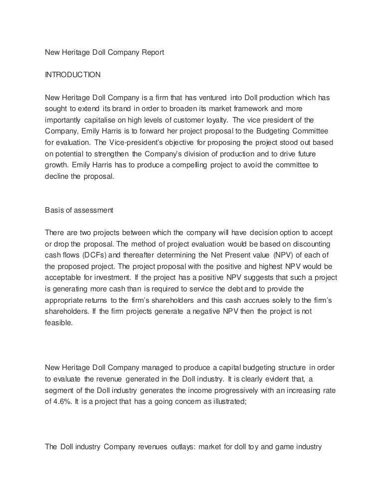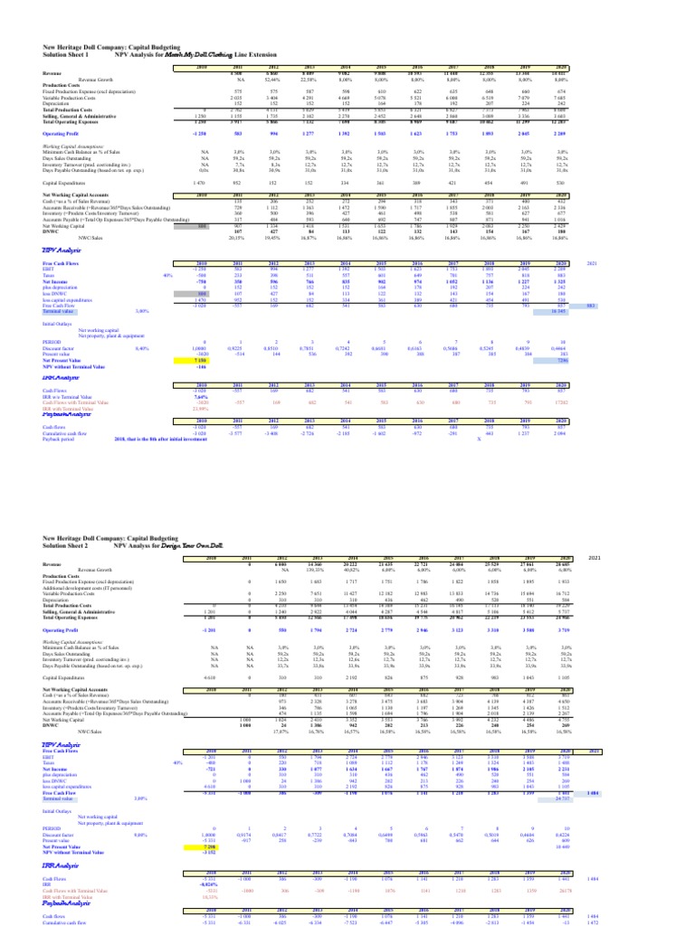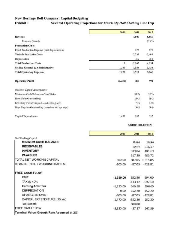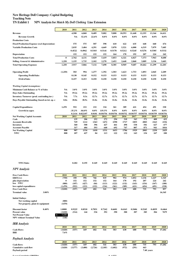 Heritage Case Sol Npv Analysis For Match My Doll Clothing Line