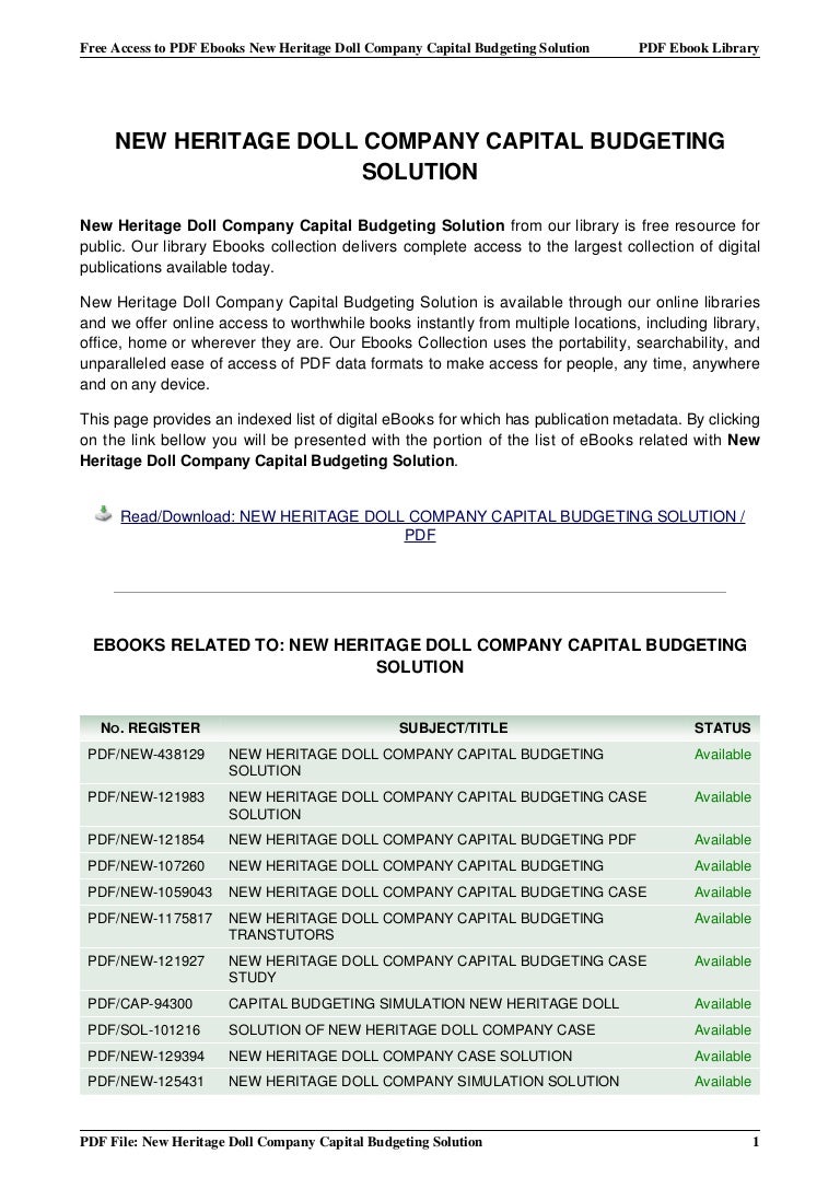 New Heritage Doll Company Case Solution