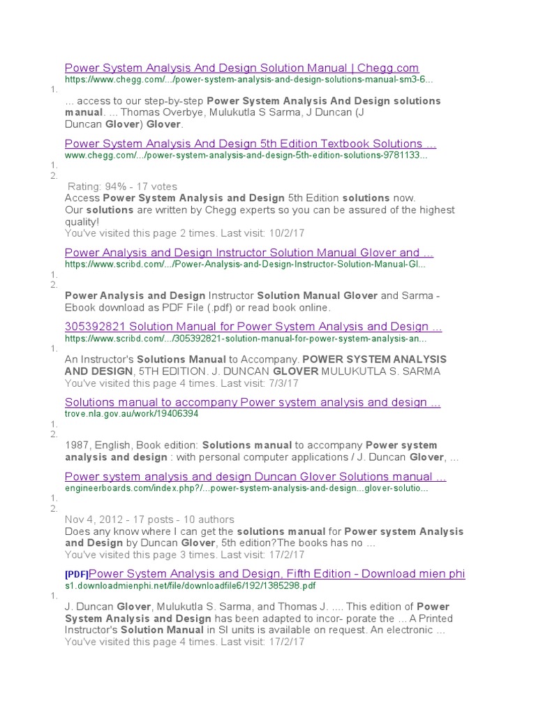 Bfdfa Power System Analysis And Design Glover Solution Manual Pdf
